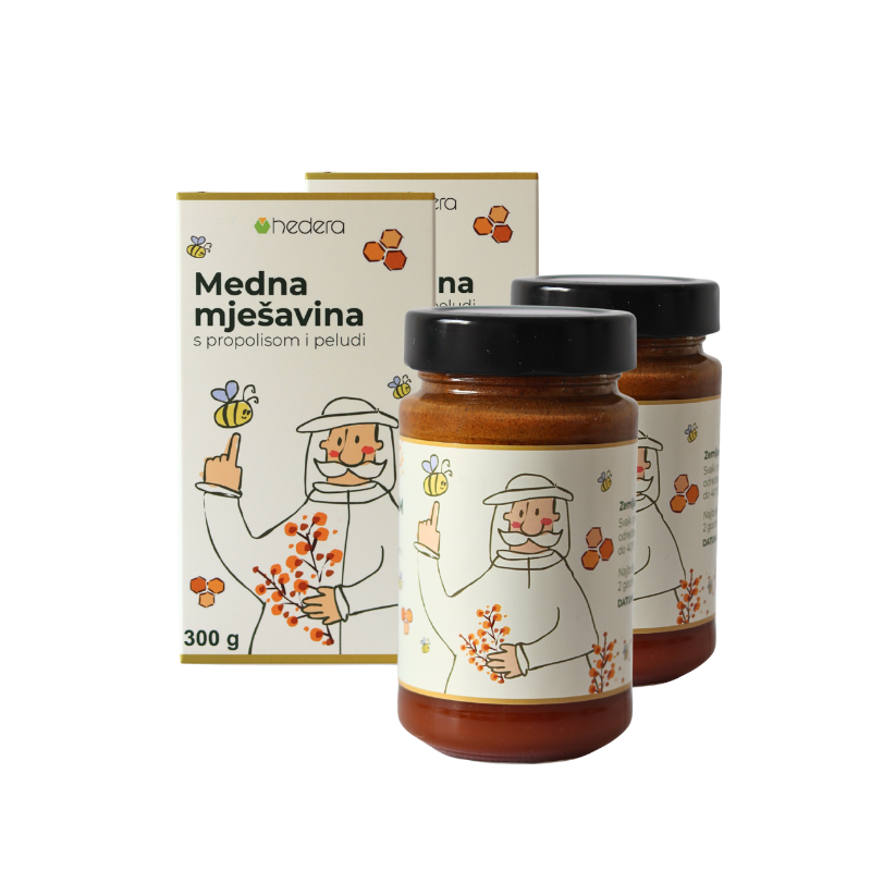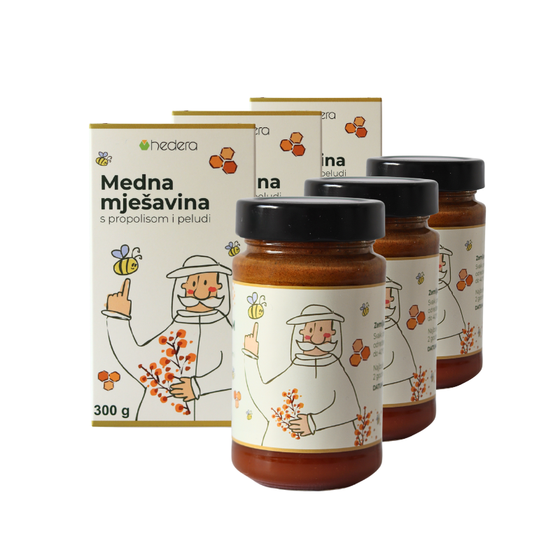 Med bagrem (86%), pčelinja pelud (10%), propolis (4%)
